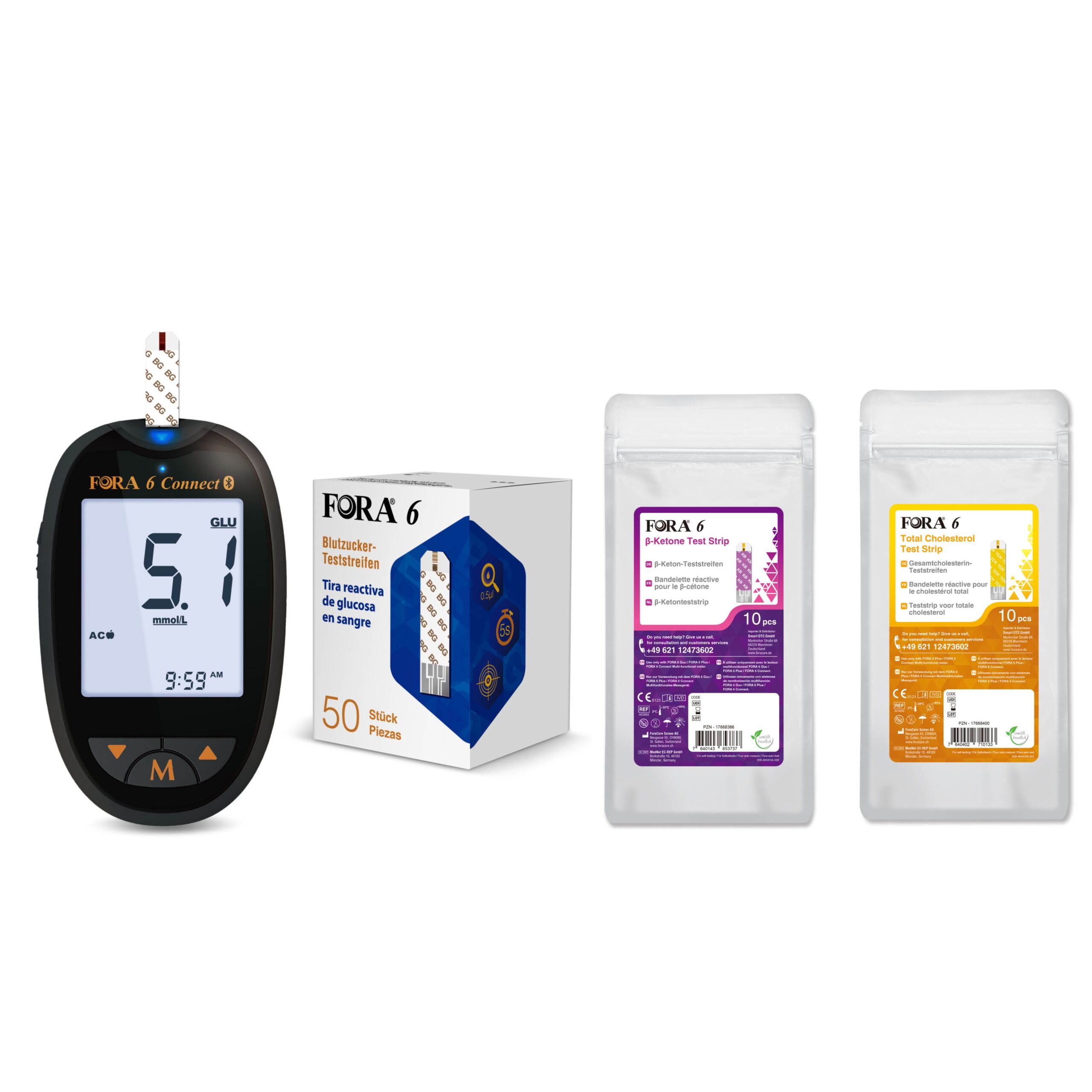 Acest pachet este ideal pentru utilizatorii care doresc un control metabolic complet — monitorizare glucoză + cetone + colesterol — totul într-un singur dispozitiv. Astfel, oferă un echilibru între testarea regulată a glicemiei și supravegherea stărilor de cetoză și a profilului lipidic.
